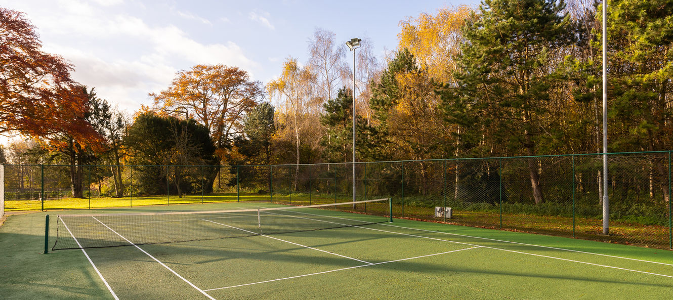 Front South facing and rear West facing lawned gardens with patio, garden furniture, a charcoal barbecue, games room with pool table and television and tennis court.